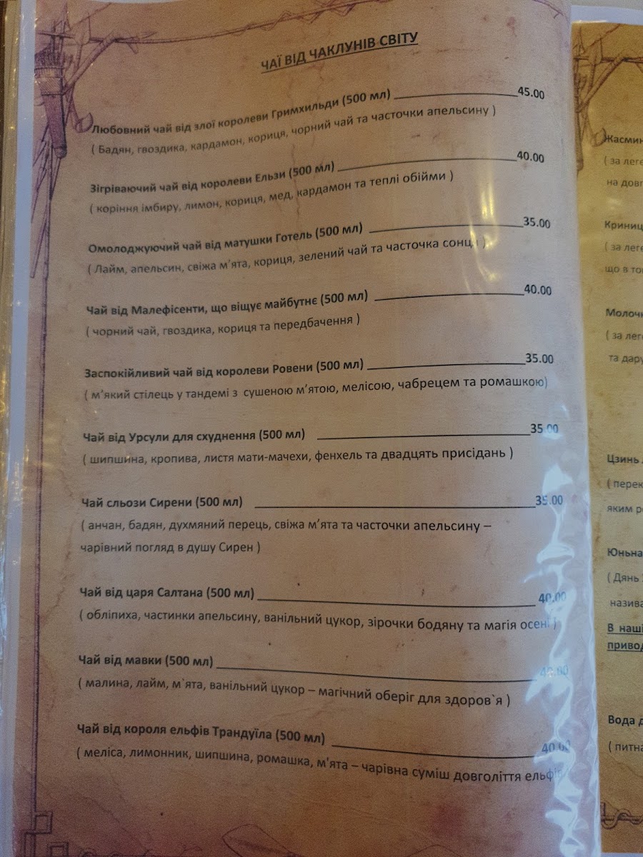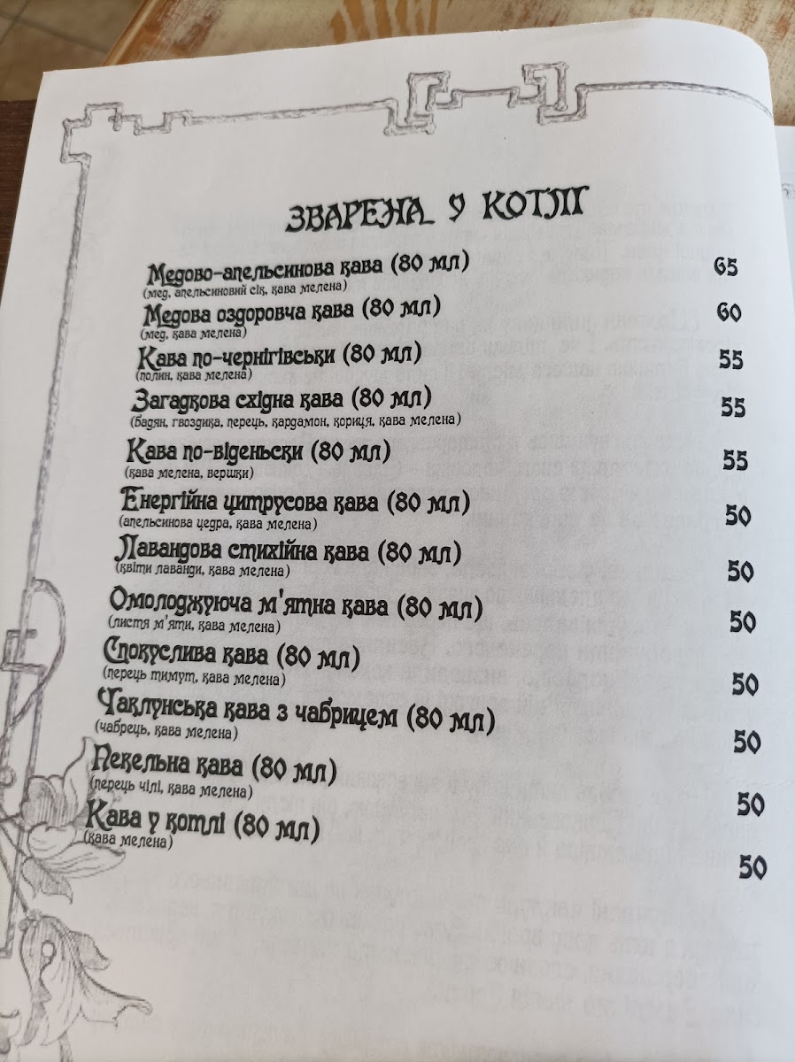 Kav'yarnya 'Vidʹmatsʹka Kava' Menu